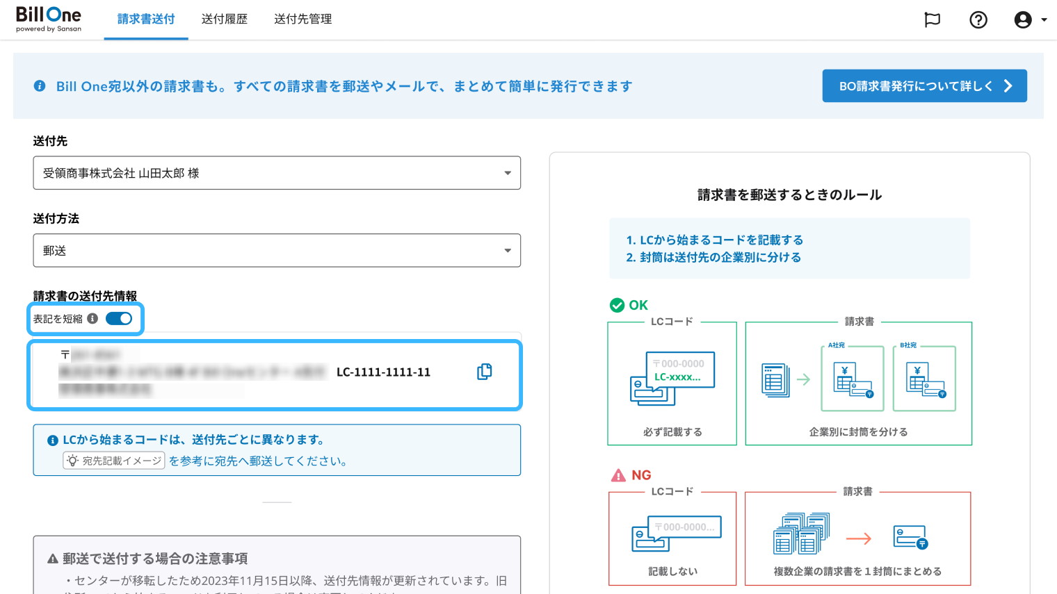 請求書を送付する(郵送)