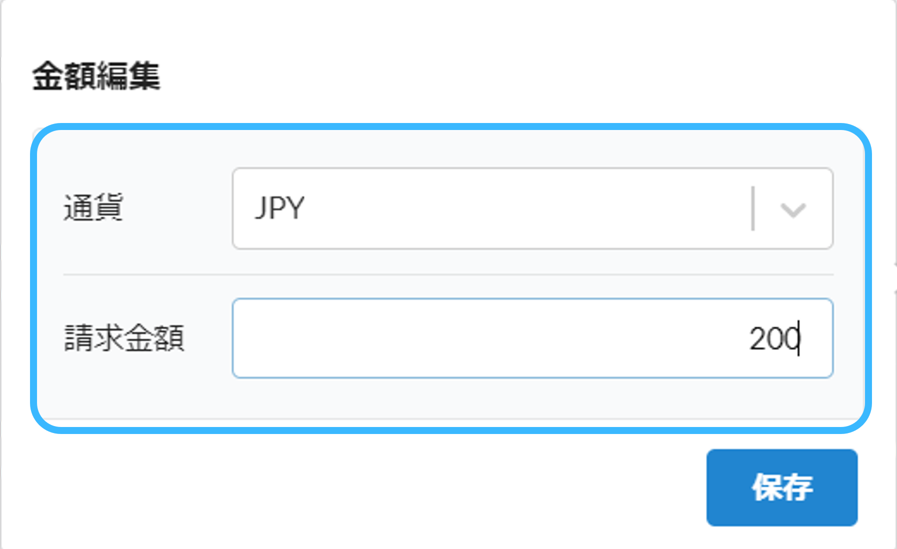 ここで入力した金額が送付先に通知されることはありません。実際の請求金額を変更したい場合は新規で請求書を送付し直してください。 |