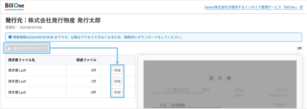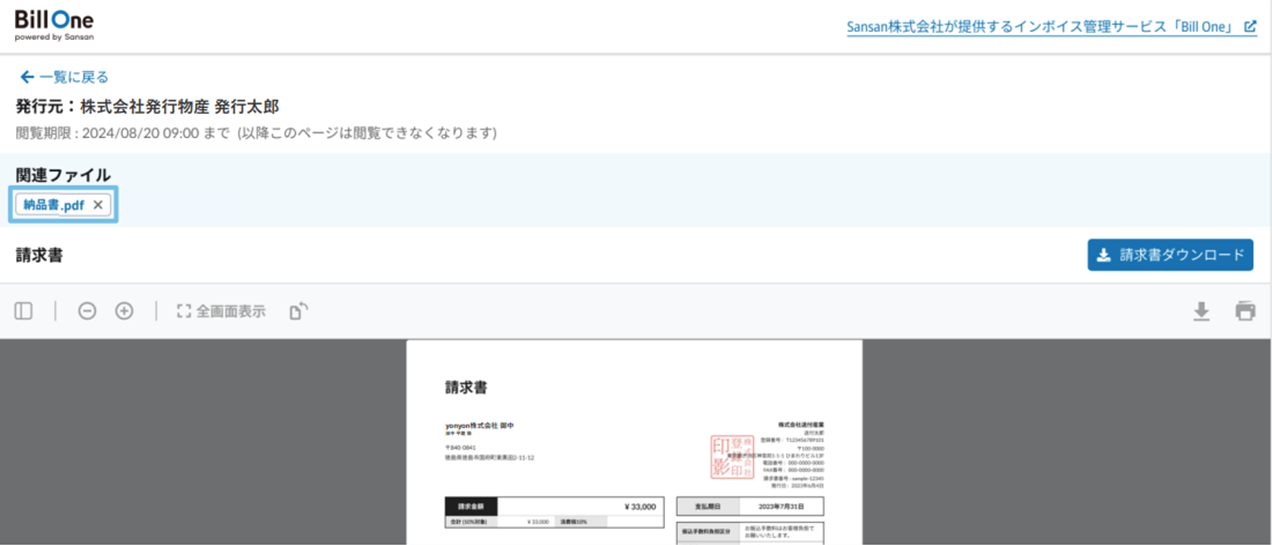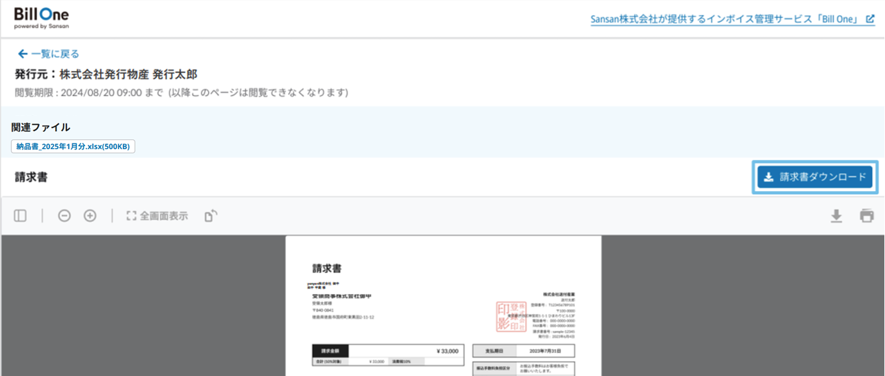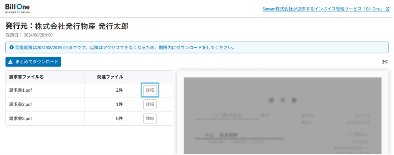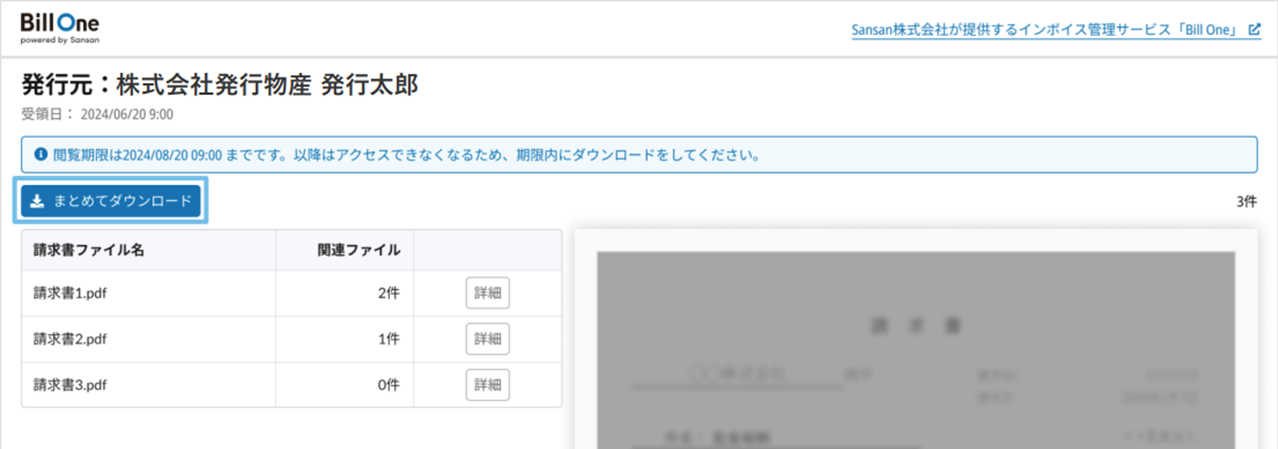 Bill One発行機能を利用している取引先から請求書が送付された場合のダウンロード方法について説明します。